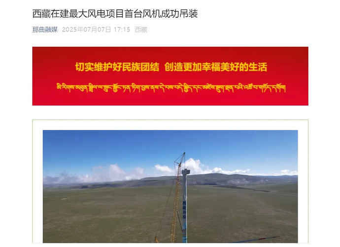 媒體報道丨西藏在建最大風(fēng)電項目完成首臺風(fēng)力發(fā)電機組吊裝